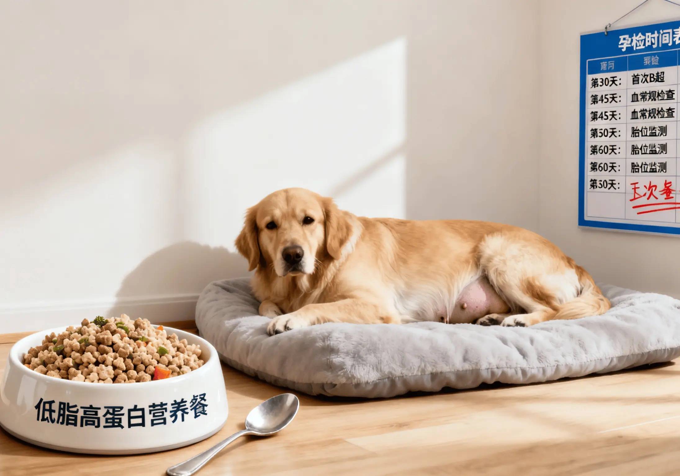 宠物怀孕时,营养需求会增加,要为它提供富含蛋白质、钙、维生素等营养物质的食物,可将狗粮换成更有营养的,适当喂一些宠物可以吃的肉类和水果,如鸡肉、牛肉、苹果、香蕉等。但要注意控制食量,避免宠物过度肥胖。同时,要避免宠物剧烈运动,不要让它玩过于激烈的玩具,也不要让它与其他宠物发生冲突。怀孕后期,要为宠物准备一个温暖、安静、干净的产房,让它有一个舒适的生产环境。