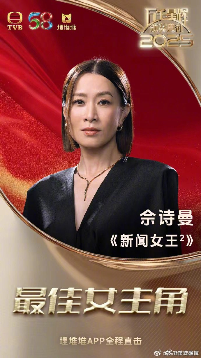 大湾区最喜爱TVB女主角:佘诗曼(《新闻女王2》)